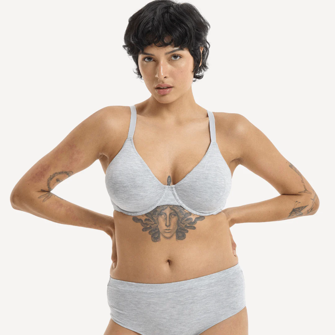 So we’ve become pretty famous for the comfort levels of our bras, and this one is set to break all the records. With flexible underwire that moulds to your body, and support that lifts and shapes, this will be your new go-to t-shirt bra. This is a no padding zone, instead our (better than) cotton underwire bra uses your natural shape (and our expert construction) to create boobie magic. Plus, it’s made from our sustainable and delicious to touch Better Than Cotton fabric.